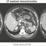 El lavado relativo se puede calcular cuando la TC sin contraste no está disponible (UH contraste temprano – UH retardada)/ UH contraste temprano × 100%.