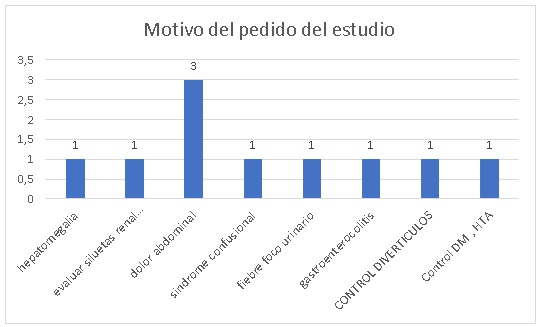 • Reconocer el motivo de solicitud por el cual se realizó el estudio tomográfico de abdomen en los pacientes a quienes se les reconoció incidentaloma suprarrenal.