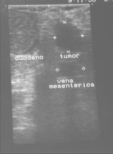La ecografía es un método de mucha relevancia, complementario en el manejo del insulinoma. Permite, junto con la palpación bimanual, localizar la lesión señalada por los otros exámenes. Este método tiene una sensibilidad del 9%-64%, pero la combinación de la palpación del páncreas más la ecografía alcanza una sensibilidad del 100%, (7, 10) con limitaciones cuando se trata de tumores <2 cm.(6, 11)