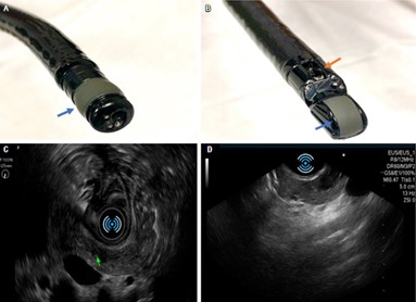 También conocida como ultrasonografía endoscópica (USE), es una técnica diagnóstica avanzada que combina la endoscopía y la ecografía para obtener imágenes detalladas de las estructuras internas del cuerpo. Este método utiliza un endoscopio flexible equipado con un transductor de ultrasonido en su extremo, lo que permite la visualización de órganos como el páncreas, ganglios linfáticos y tejidos circundantes con alta resolución y precisión.(8)