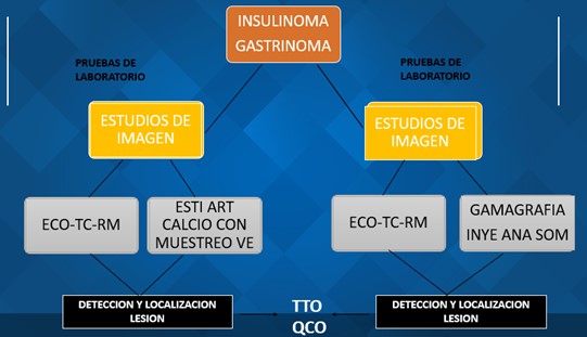 A continuación, se muestra un flujograma para el abordaje inicial del insulinoma y su diagnóstico diferencial el gastrinoma.