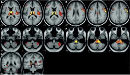 Se pueden mencionar al respecto los estudios que han encontrado en pacientes dependientes al alcohol una disminución del volumen de sustancia gris en el área de la corteza frontal, el hipocampo y el tálamo. El volumen de las sustancias blanca y gris también se puede ver disminuido en el área periventricular, la protuberancia y el cerebelo. Estos déficits de volumen también se han localizado en la corteza prefrontal dorsolateral derecha, ínsula anterior derecha, en el núcleo accumbens y en la amígdala izquierda(16) (ver Imagen 1).