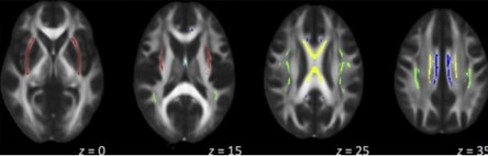 Asimismo, como se indicó previamente, a través de la TC también se puede observar el deterioro de la microestructura cerebral por adicción al alcohol. El abuso de esta sustancia altera cinco fibras del cerebro, como el cuerpo calloso, el fondo de saco, la cápsula externa, el cíngulo circunvolución y el fascículo longitudinal superior, las que están involucradas en funciones como el procesamiento visoespacial y del lenguaje, la comunicación interhemisférica, la memoria, el procesamiento emocional, la toma de decisiones y la integración sensorial(16) (ver Imagen 2).