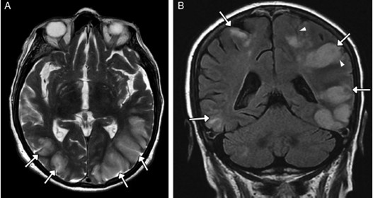 En la literatura se encontró caso de una mujer de 42 años, consumidora esporádica de MDMA, quien acudió a la guardia con síntomas de cefalea, alteración visual e hipertensión por síndrome de encefalopatía posterior reversible. Las imágenes radiológicas permitieron observar edema córtico-subcortical bilateral confluente de predominio parieto-occipital posterior. A partir de las imágenes radiológicas se pudo intervenir a través de un tratamiento con soporte y control de la presión arterial. (18) (ver Imagen 10).