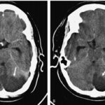 En el caso que se viene reseñando, se realizó TC sin contraste para evidenciar eventuales daños isquémicos. En este estudio se localizó un hematoma intraparenquimatoso (ver Imagen 6). Este tipo de hematomas tiene un significativo riesgo para la persona, dado que puede avanzar hacia hemorragias con daño en la barrera hematoencefálica e incremento de la presión intracraneal, que puede ocasionar déficit neurológico e incluso la muerte.(17, 18)