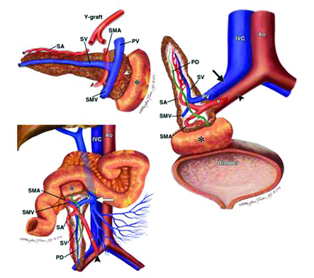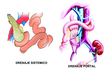 El antiguo método de drenaje de las secreciones exocrinas a través de la vejiga está siendo sustituido por un drenaje entérico, más fisiológico, hacia el yeyuno.